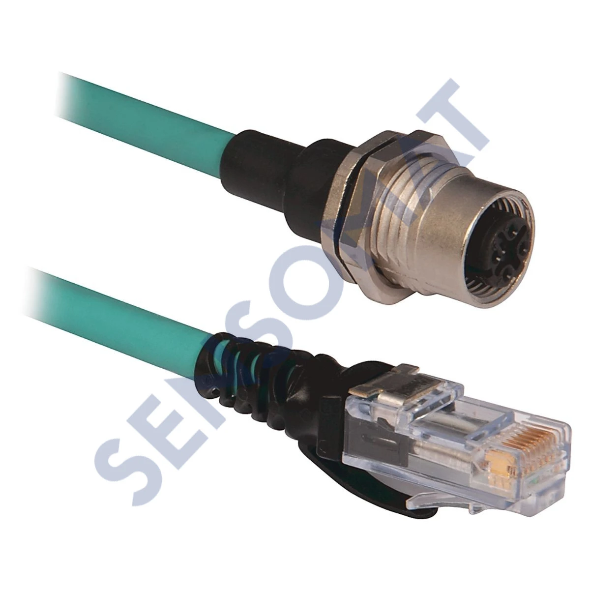 Ethernet Media,Micro D Code, QD Style,Standard,Female Panel Mount Receptacle,4 conductors (2 pair),Teal 26AWG Flex LSZH PUR,Foil and Braided Shield,100BASE TX, 100 Mbit/s,RJ45 Connector,Straight Male,standard,0.3 Meters,Standard