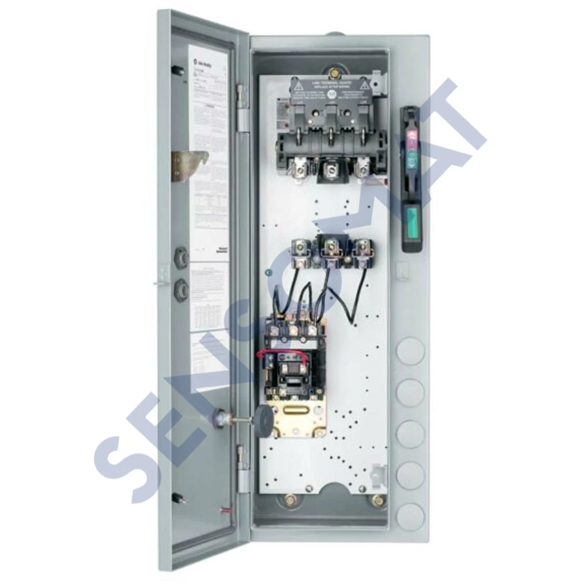 Combination Starter Disconnect,Size 1,480V 60 Hz,NEMA 1 General Purpose,Fusible,30 A Class R,Pilot Lights,HAND-OFF-AUTO Selector Switch,440/480 VAC – 50/60Hz,Eutectic Overload,Eutectic Alloy,No Fuse Cover,No Auxililiary Contacts,Standard Capacity,Next Day Ship,Incandescent,Red Lens – Pos. 1,No Pilot Light Lens – Pos. 2,No Pilot Light Lens – Pos. 3,No Pilot Light Lens – Pos. 4,No Pilot Light Lens – Pos. 5